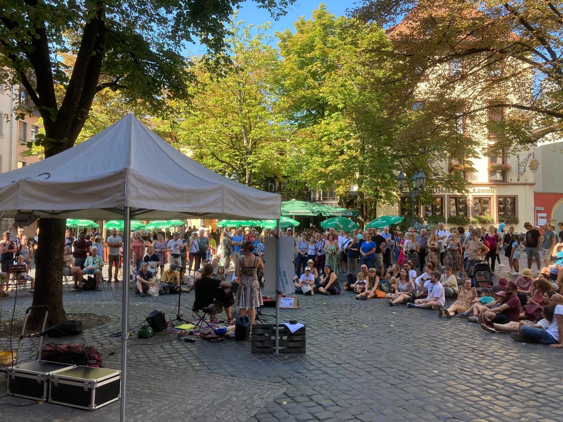 Weitere Auftritte, bei denen wir live auf der Straße auftreten, sind dagegen eher spontaner Natur - meistens dauert es keine 20-30 Minuten, nachdem wir mit Instrumenten aufgebrochen sind, bis wir bereits beginnen, Musik zu machen. Gerne kannst du uns auch einladen, in deiner Nähe zu spielen.