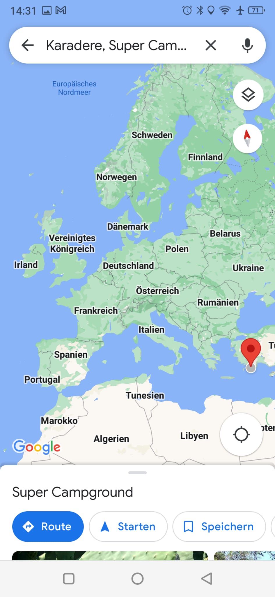 Und es hätte kein malerischerer Spot sein können: Unter gelb blühenden Pusteblumen-Bäumen parkten wir Rusty in einem kleinen Wäldchen direkt am Strand - ganz im Süden der Türkei. Eine kleine Schildkröte kreuzte unseren Weg, im Sand markierten wir den "Weitesten Punkt" künstlerisch mit einem Kompass.