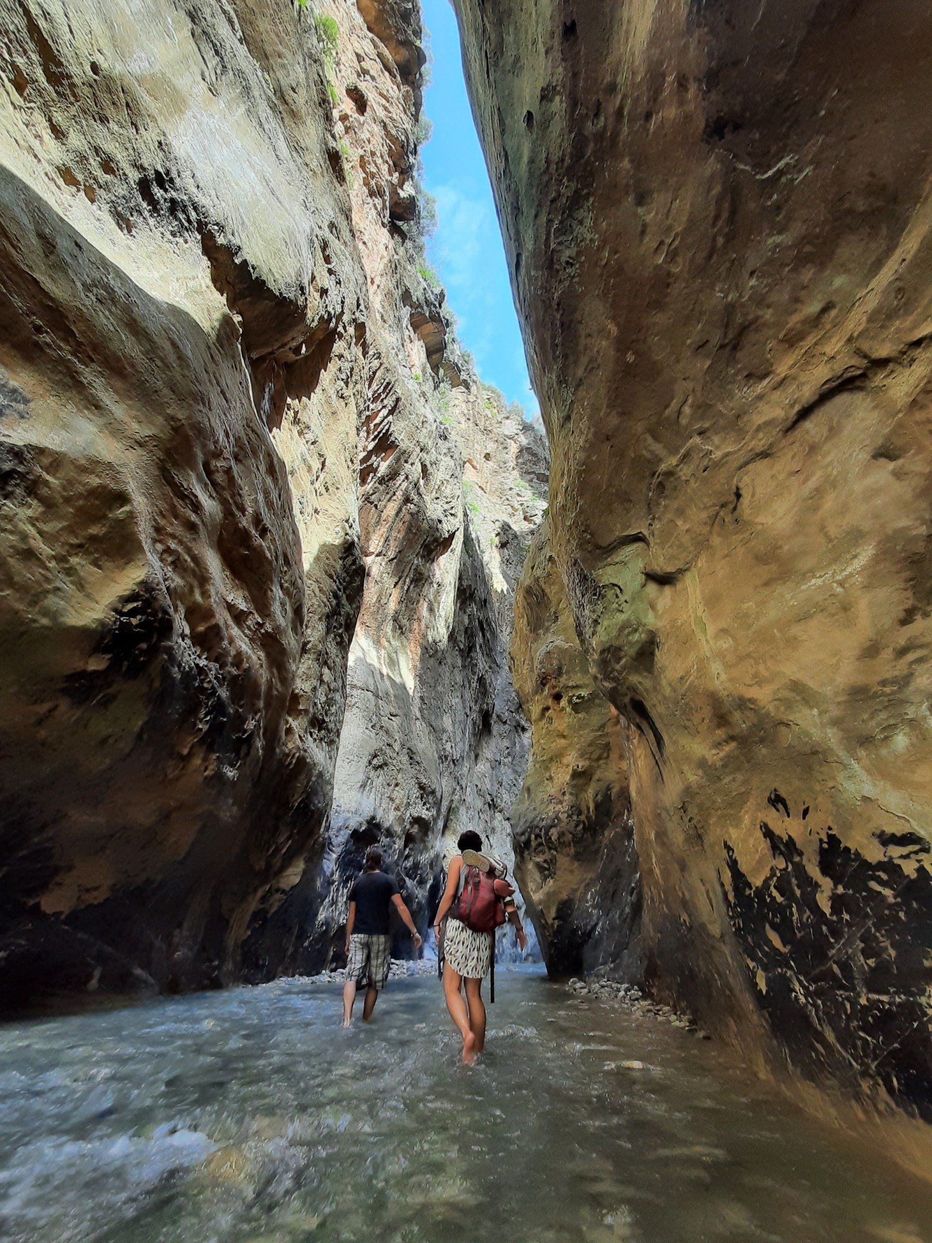 Wir trieben einen ganzen Tag auf einem riesigen Luftbett (befestigt an der Kaimauer direkt bei den Vans) auf dem Meer, Sangria in der Hand und Musik in den Ohren, bis wir spät Abends auf dem Rücken liegend den Sternenhimmel betrachteten. Wir nahmen es mit einer abenteuerlichen und malerisch schönen Schlucht auf, die wir wie Kinder auf einem Spielplatz barfuß erkundeten, durchs Wasser wateten und uns an Seilen steile Felswände entlang hangelten. Am Rosenmontag wurde eine kleine Karnevals-Party veranstaltet, in der natürlich auch die entsprechende Geischtsbemalung neben Karnevalsmusik und griechischen Bier aus Kölschgläsern nicht fehlen durfte!
